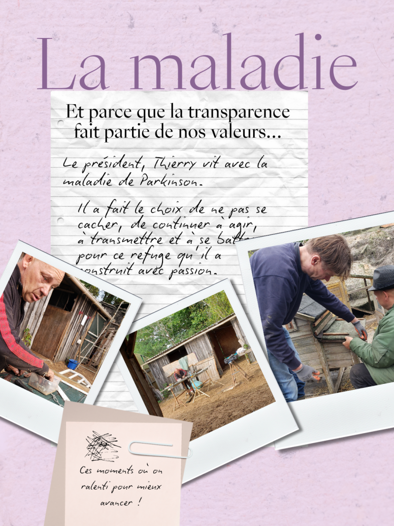 Dans un souci de transparence, nous souhaitons également informer nos visiteurs que le président du refuge vit avec la maladie de Parkinson.